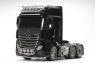 This is a highly accurate 1/14 scale radio control model that recreates the Mercedes Benz Actros 3363 3-axle truck. The Actros series debuted in 2011 and was named 2012 Truck of the Year. Powered by a 15.6-liter inline-6 turbocharged diesel putting out a max of 630hp, the actual 3363 can haul up to 250 tons! The Tamiya rendition faithfully captures the truck’s modern form with the use of ABS plastic body parts and a number of metal chassis components. One look at the detailed interior and auxiliary equipment, such as air tanks, will confirm that the body features replica-quality realism, which is further enhanced with metal transfers depicting emblems and numerous metal-plated parts. The chassis is built for durability as it uses aluminum side channels with resin cross members. Drivability is accomplished by power from the front-mounted motor and is transmitted via a propeller shaft to the rear axle; built-in differential gears guarantee smooth cornering. Gear changes can be made via a separately-sold 4-channel transmitter. The Actros’ realism can be further heightened with separately-available trailers that can be attached to its coupler and make the model over a meter in length! Features: 1/14 scale R/C model assembly kit. The body of the Actros 3363 is recreated accurately using newly-molded parts differentiating it from the 1851 spec model. The tried and tested Tamiya 3-axle chassis utilizes a tough ladder frame with aluminum side channels and resin cross members. A realistic drivetrain setup sees the front mounted motor powering twin rear axles. 3-speed transmission can be controlled via 4ch R/C transmitter. Item 7255252 is the perfect radio to compliment the Actros kit. Metal leaf spring dampers with built-in coil springs provide durable suspension. Coupler is included to enable connection with any currently available Tamiya 1/14 scale trailers.