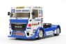 The Tamiya radio control replica faithfully captures the giant race truck. The polycarbonate body sits atop the TT-01 E chassis, which is designed for easy assembly and maintenance.